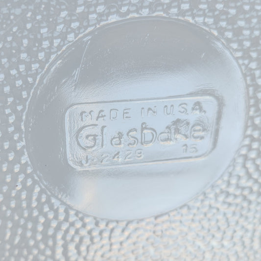 1960s Glasbake Atomic Silver and Blue Starburst Round Casserole Dish