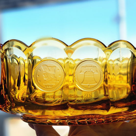 1960s Fostoria Amber Vintage Frosted Coin Glass Oval Dish
