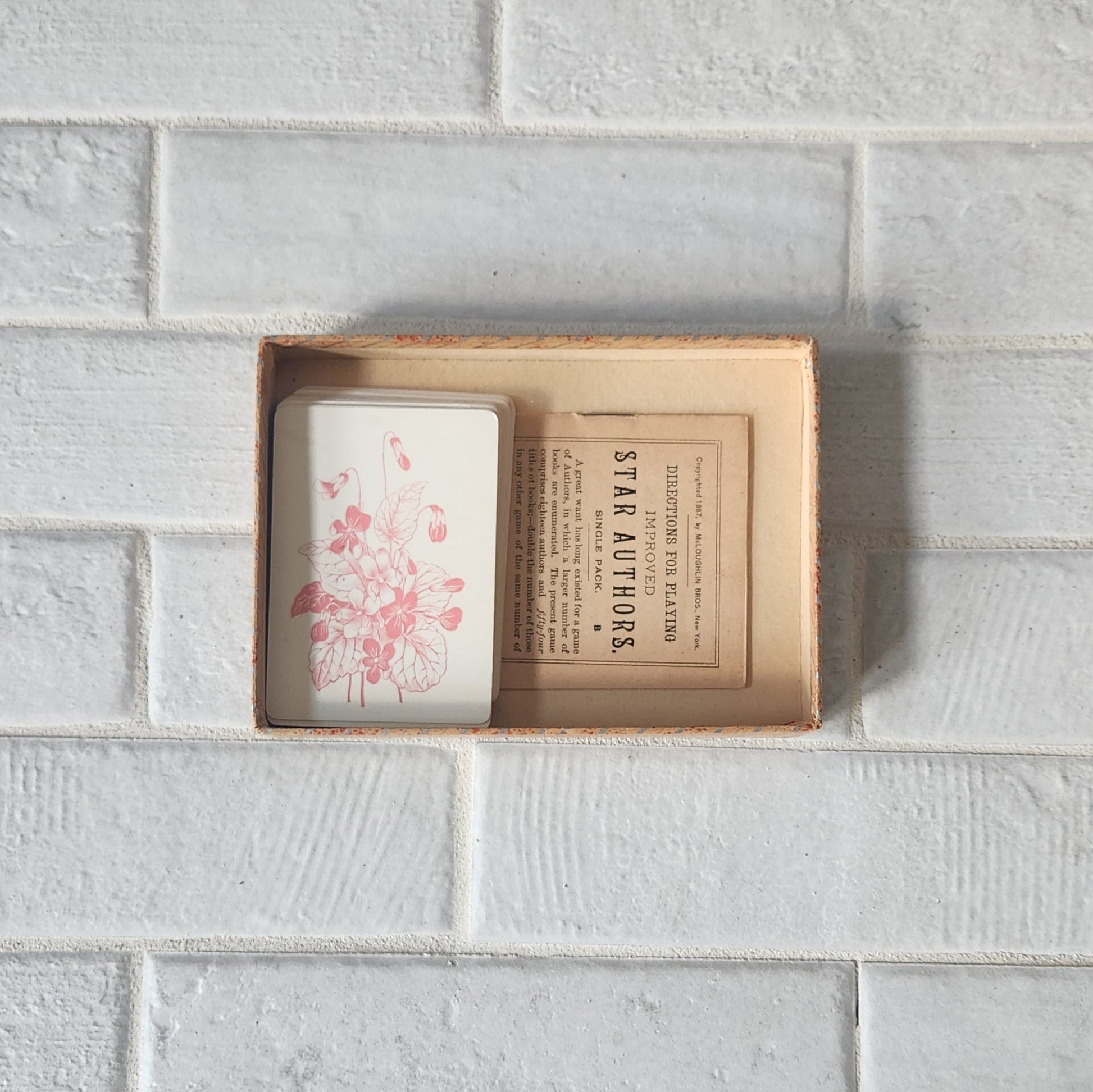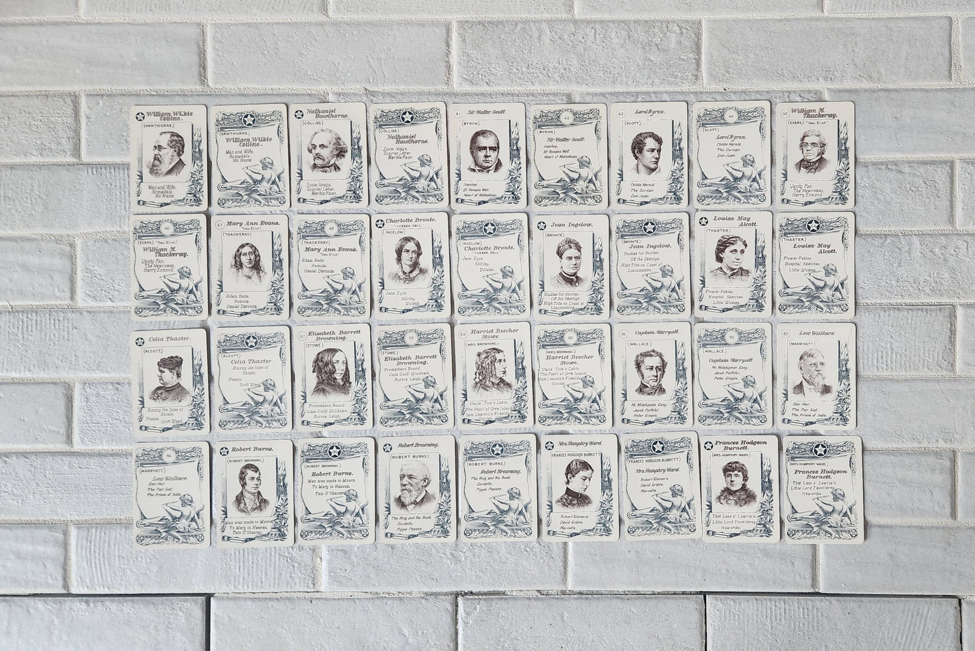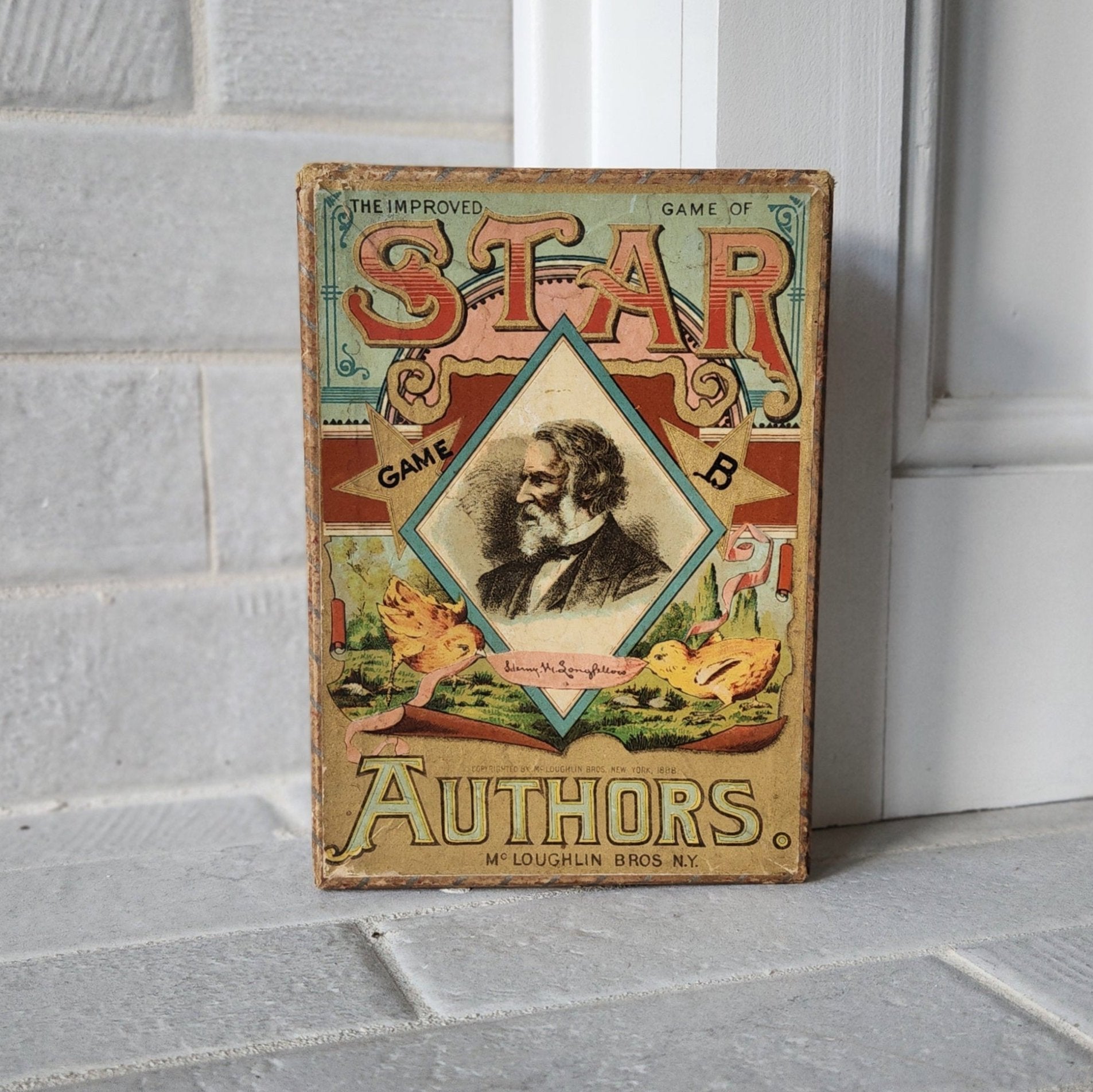 This 1888 Star Authors antique card game was extremely popular. So much so that McLoughlin Bros created a set to collect: Game A (cards 1-36) and Game B (cards 37-72). This one is in incredible condition!