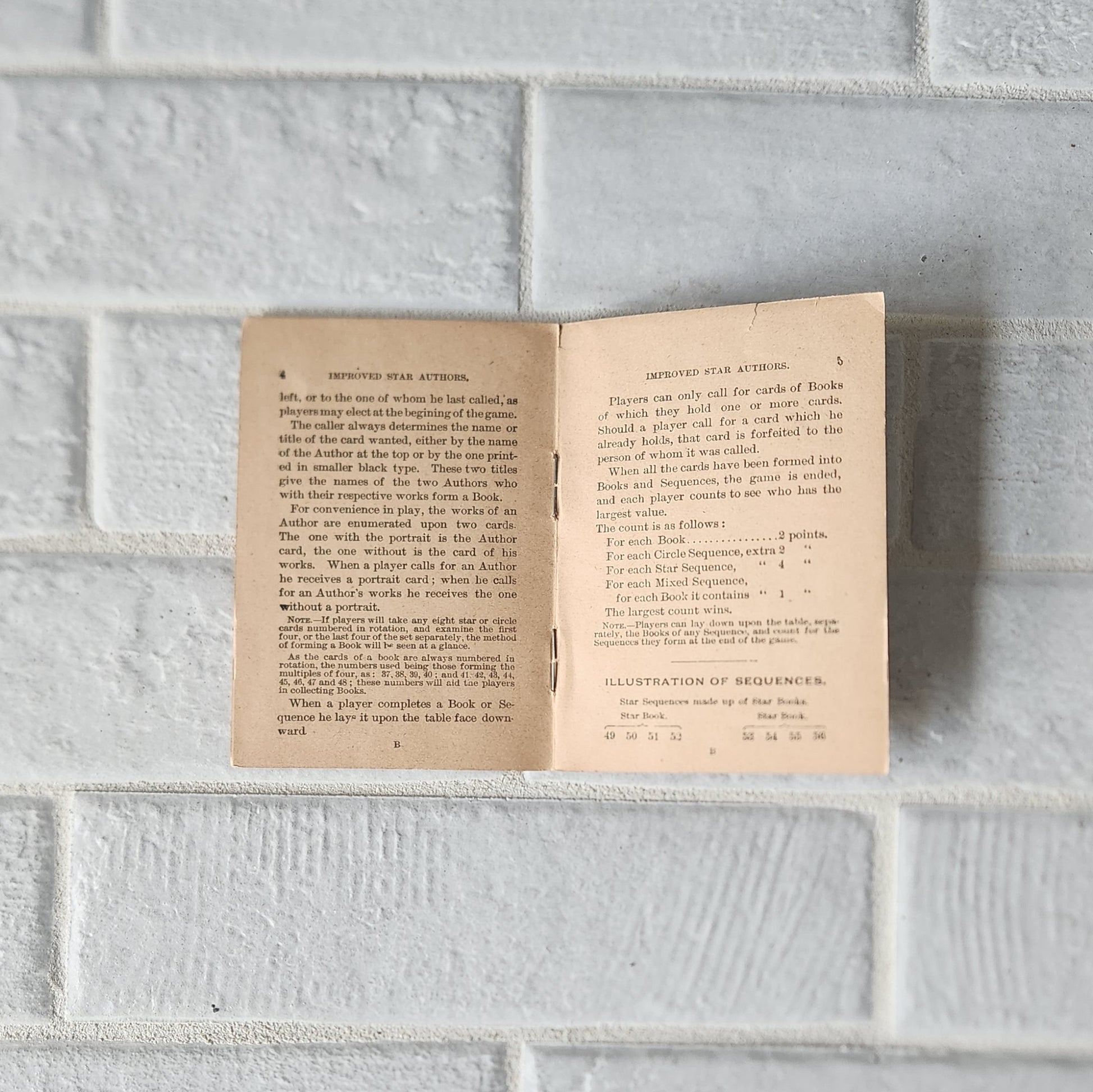 Welcome to the Improved Game of Star Authors Game B, brought to you by McLoughlin Brothers! This popular card game features beloved authors and is perfect for book lovers of all ages.