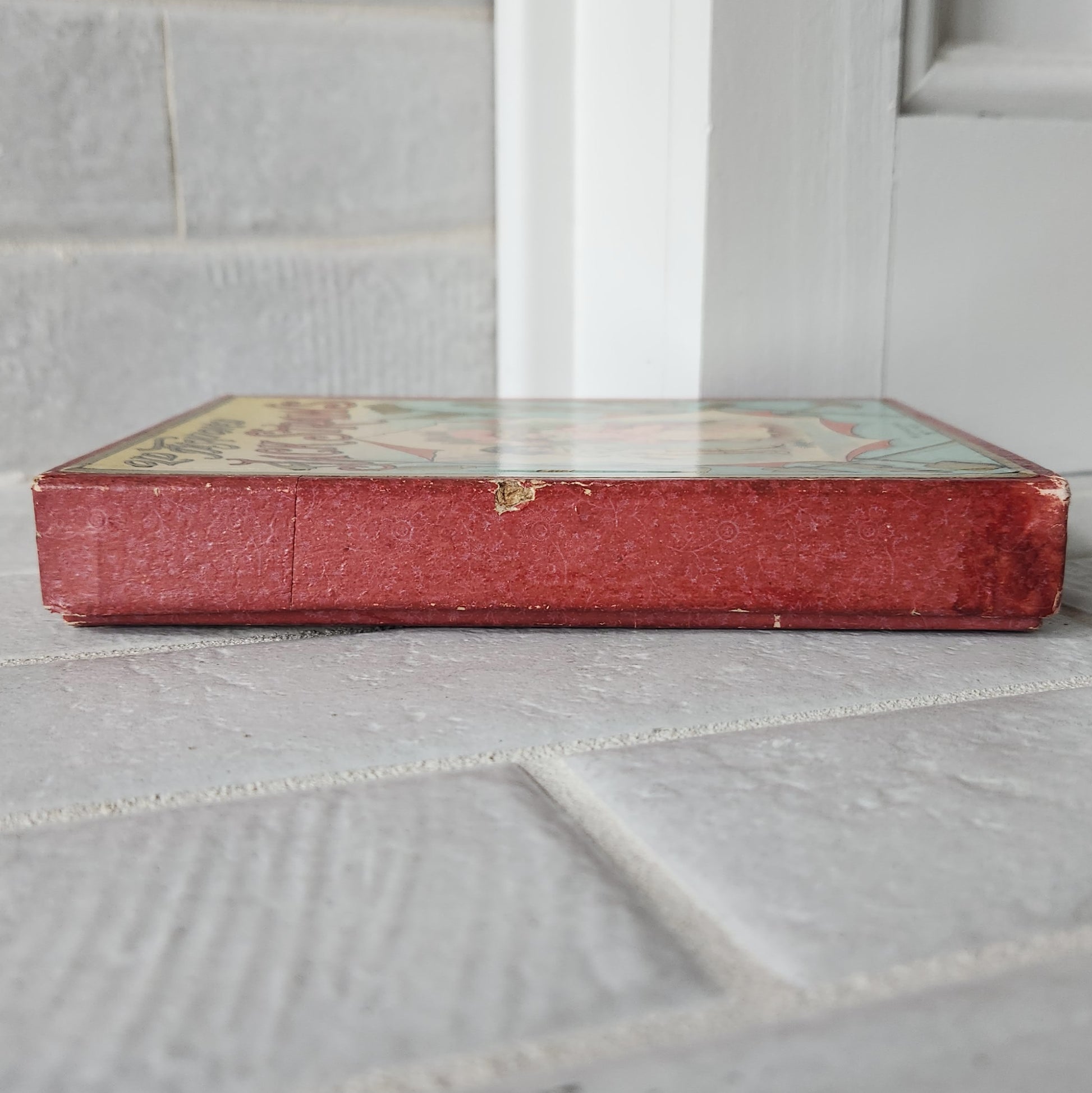 🎲 This GORGEOUS antique game is incredible! The label on the lid still shows off the beautiful colors that McLoughlin Bros are known for! The box is sturdy with a few nicks and a small stain on the outer apron.
