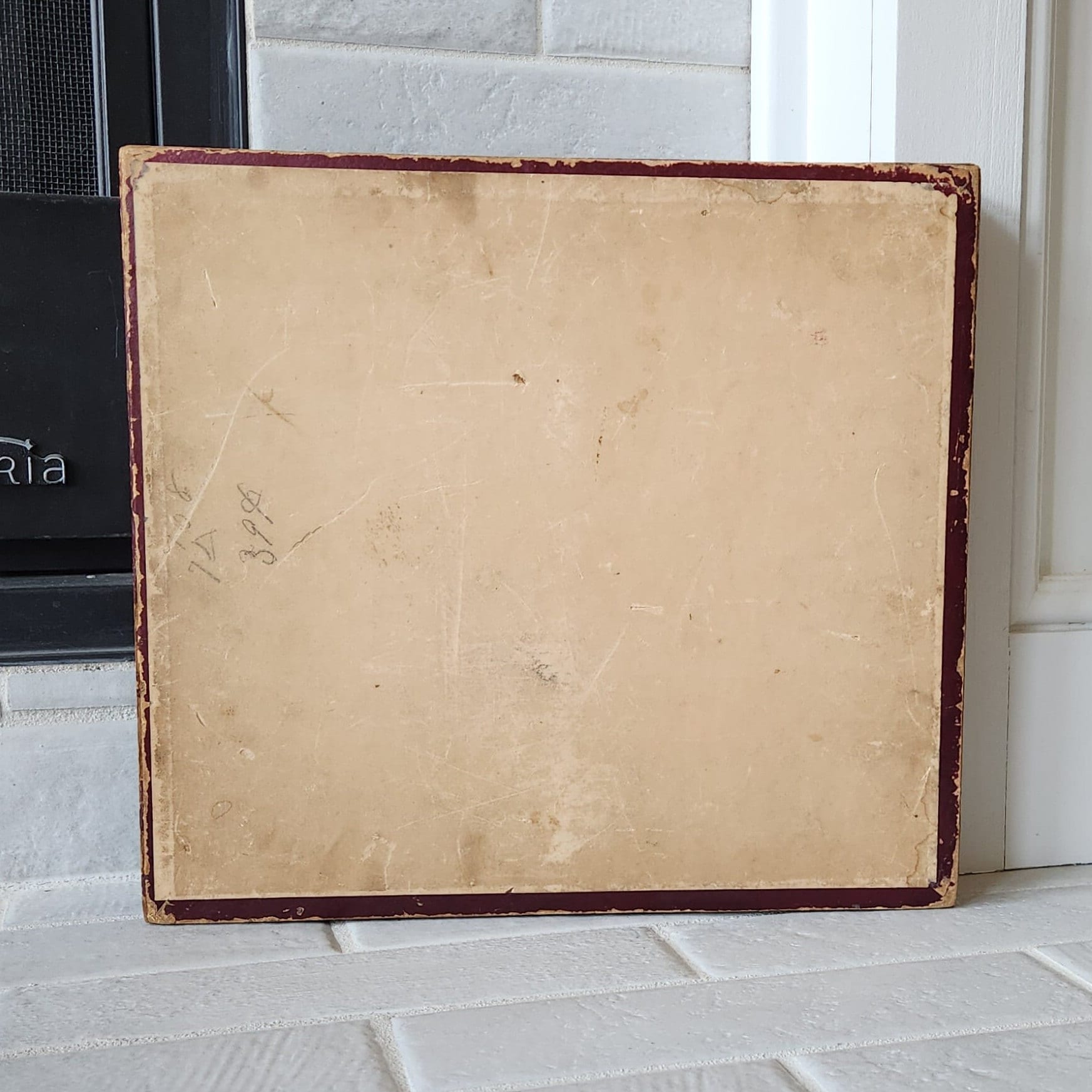 🎲 The box is made of wood and is in remarkable condition for being almost 130 years old! Some paper is missing and there appears to be a missing divider in the box, but both the top and bottom are just incredible. The colors are AMAZING!