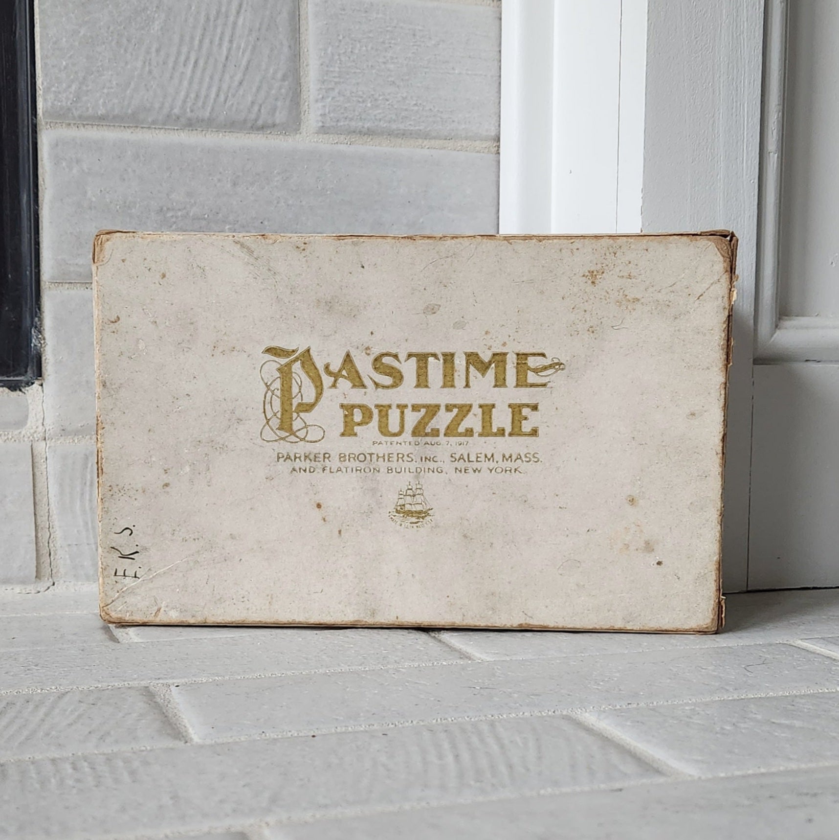 Parker Brothers released the Pastime Puzzles in 1908 and by early 1909. they were producing 15,000 per week. The skill behind these gorgeous 3-ply wood puzzles are from the "Pastime Girls" who were required to cut 1,400 pieces per day. Their amazing craftmanship is shown in each hand cut puzzle, including the patented Figurals (figures, shapes, letters, etc) within the puzzle. Each puzzle was to have 12 Figurals per hundred pieces. The puzzles remained very popular, played by Presidents, Czars and the Royal Family, until the early 1930s. The last Pastime Puzzles were manufactured until the 1950s.