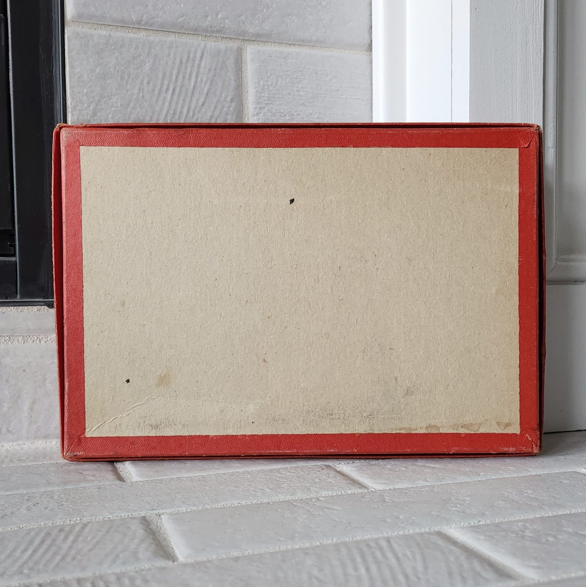 J.K. Straus and Company initially sold their puzzles in orange/red plain boxes with a side label from 1933 until the late 1940s. J. K. Straus set up his puzzle business in New York in 1933 along with his wife.
