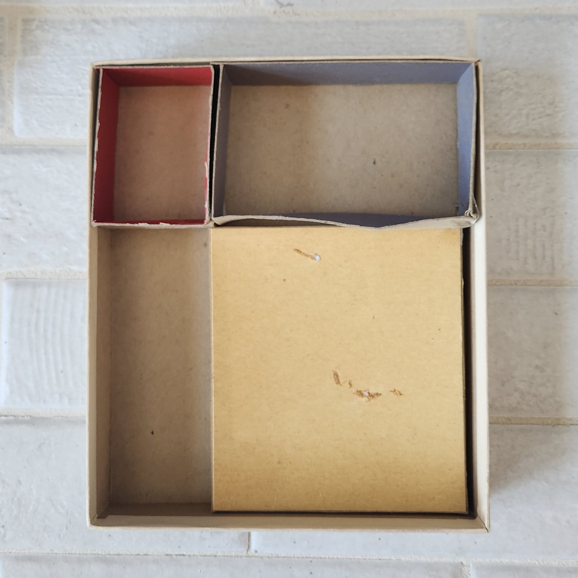 - The box is sturdy and in great condition. There is writing on the lid. All dividers are present except one.