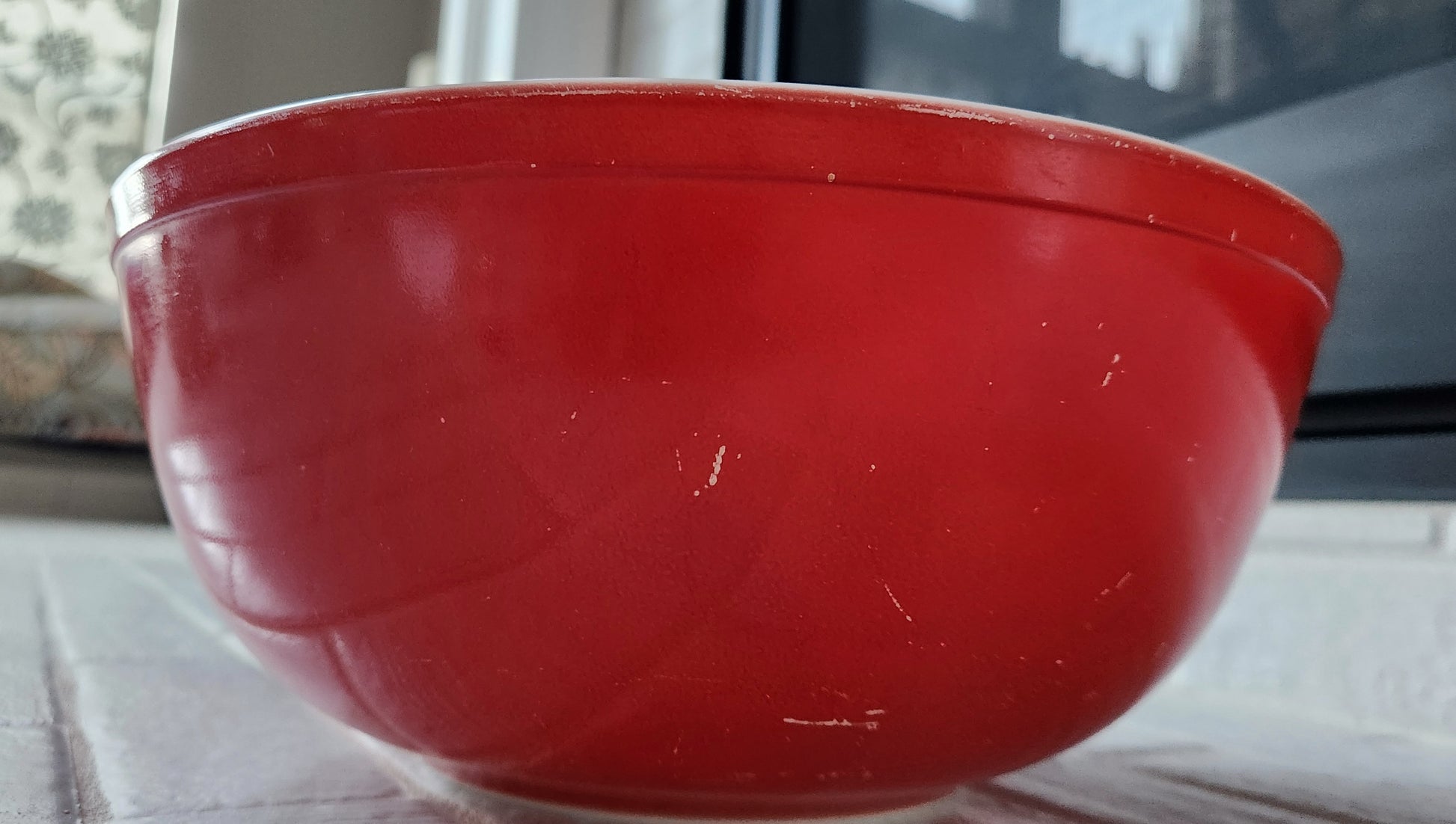 1949 Pyrex Red 4qt Open Stock Mixing Bowl