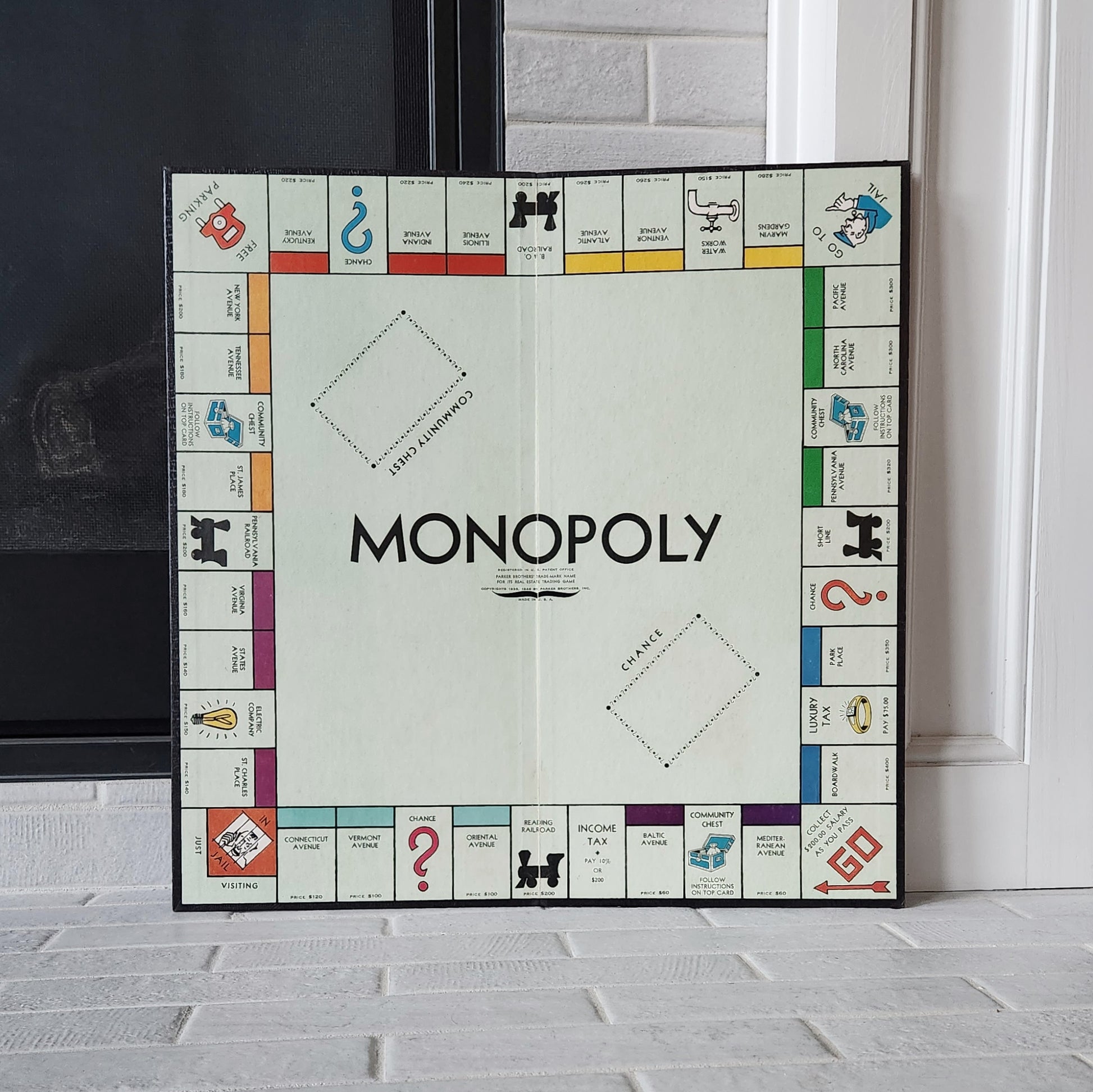 This 1953 red mustache Monopoly board and utensil set is a fun and unique item for the collector in your life!