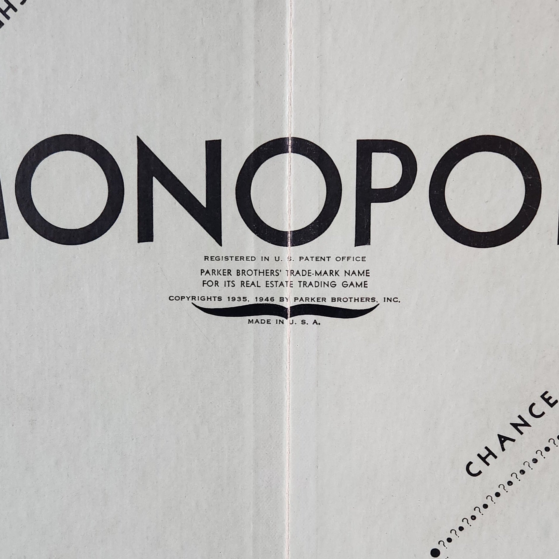 Parker Brothers signed a contract with Charles B Darrow on March 19, 1935 and began selling Monopoly shortly thereafter. They quickly learned that the first patent actually belonged to Elizabeth Magie who's patent (after purchasing it from her) of 1,509,312 was the first to appear on the game after "Trade Mark" and then "Patent Pending".