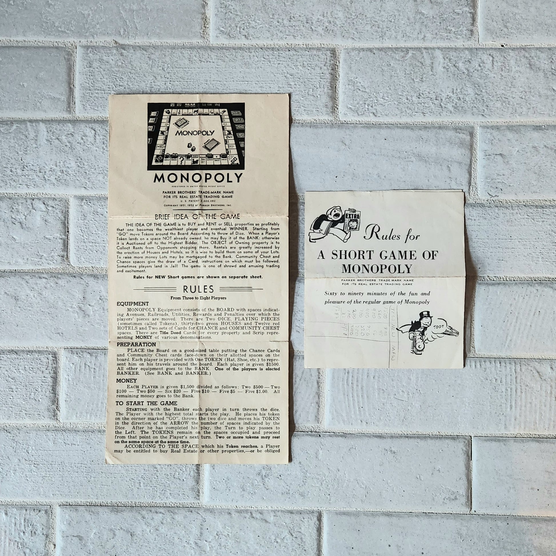 - Until 1958, Parker Brothers sold Monopoly with a small utensil box, alongside the board, as a set, as well as the standard long-box version.