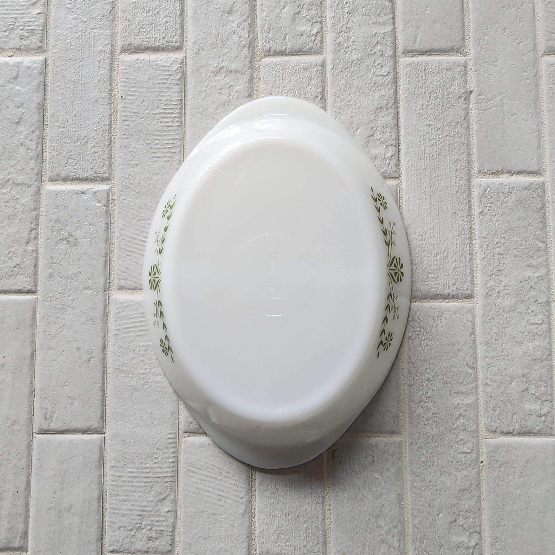 1970s Glasbake Green Crazy Daisy Divided Oval Casserole Dish J2352