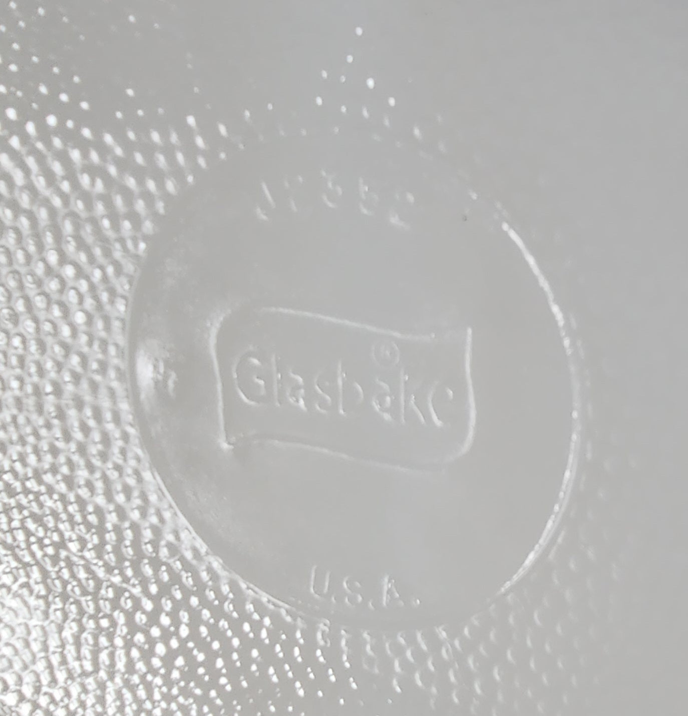 Glasbake was introduced in 1907 by the McKee Glass Company (Pittsburgh, PA) as a competitor to Pyrex, offering heat-resistant soda-lime glass bakeware. It gained popularity from the 1920s to the 1970s, producing iconic mid-century designs like the Atomic Starburst. In the 1960s, McKee merged with Jeannette Glass (Jeannette, PA), continuing Glasbake’s production until its decline and closure around 1983.