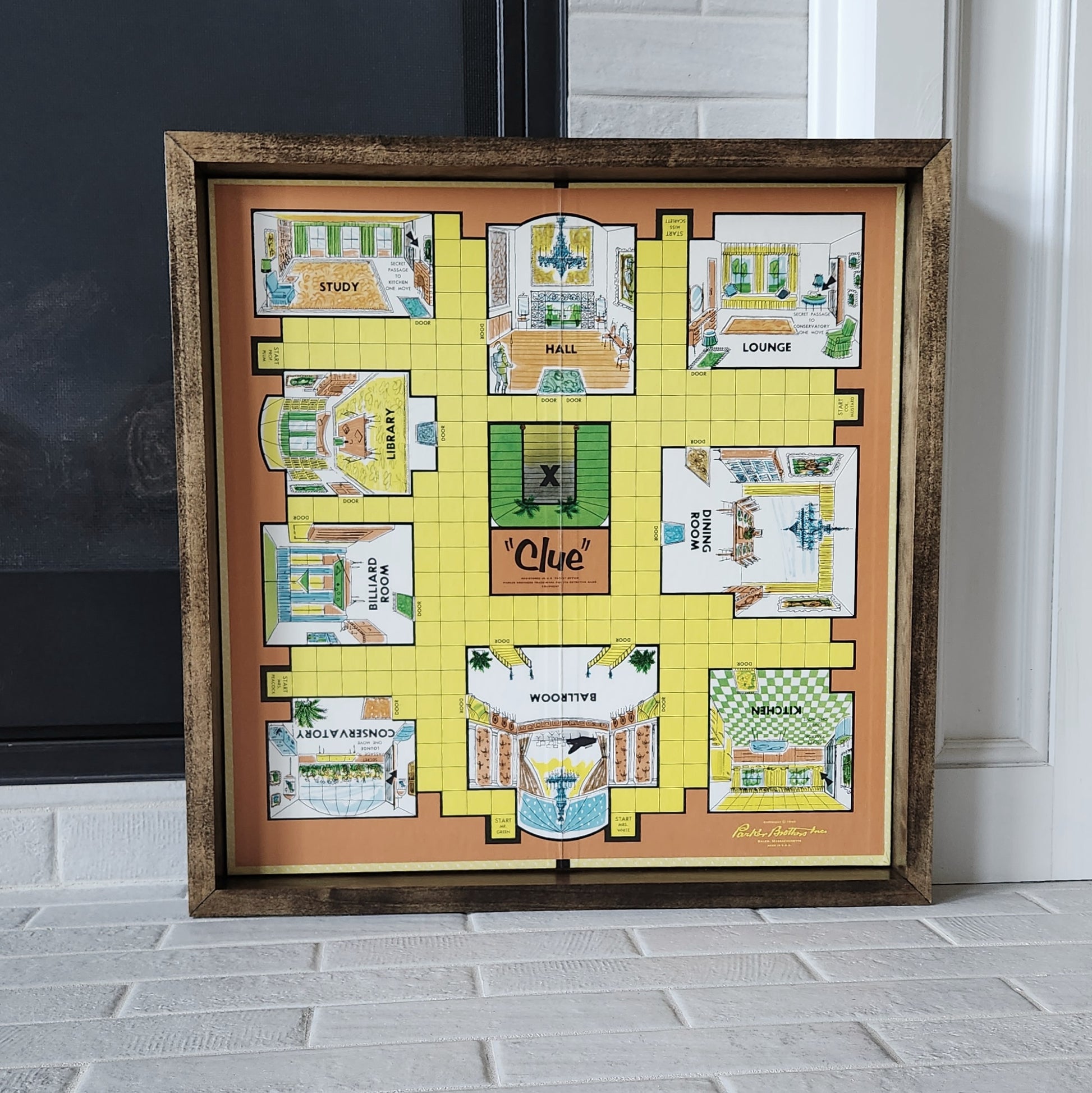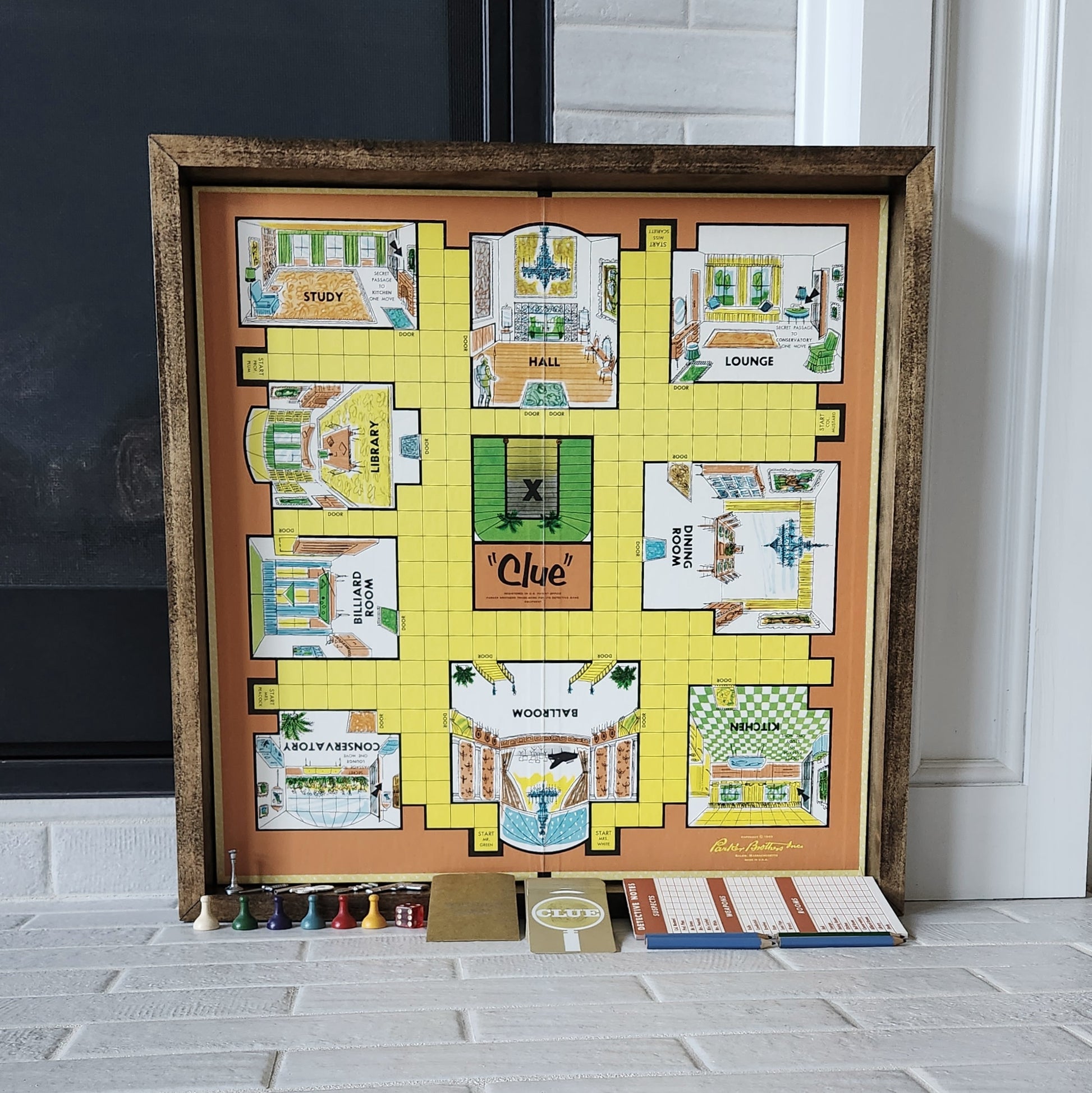 Transform your home into a vintage game night with our handmade framed 1963 Clue board game.