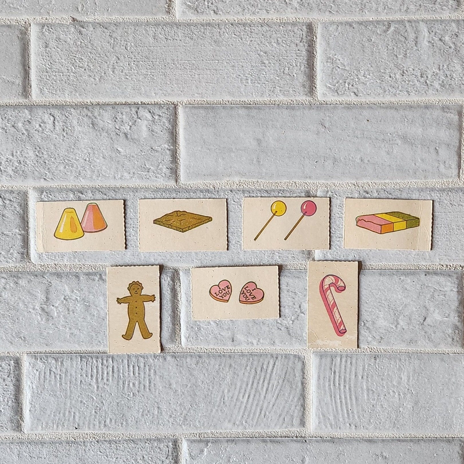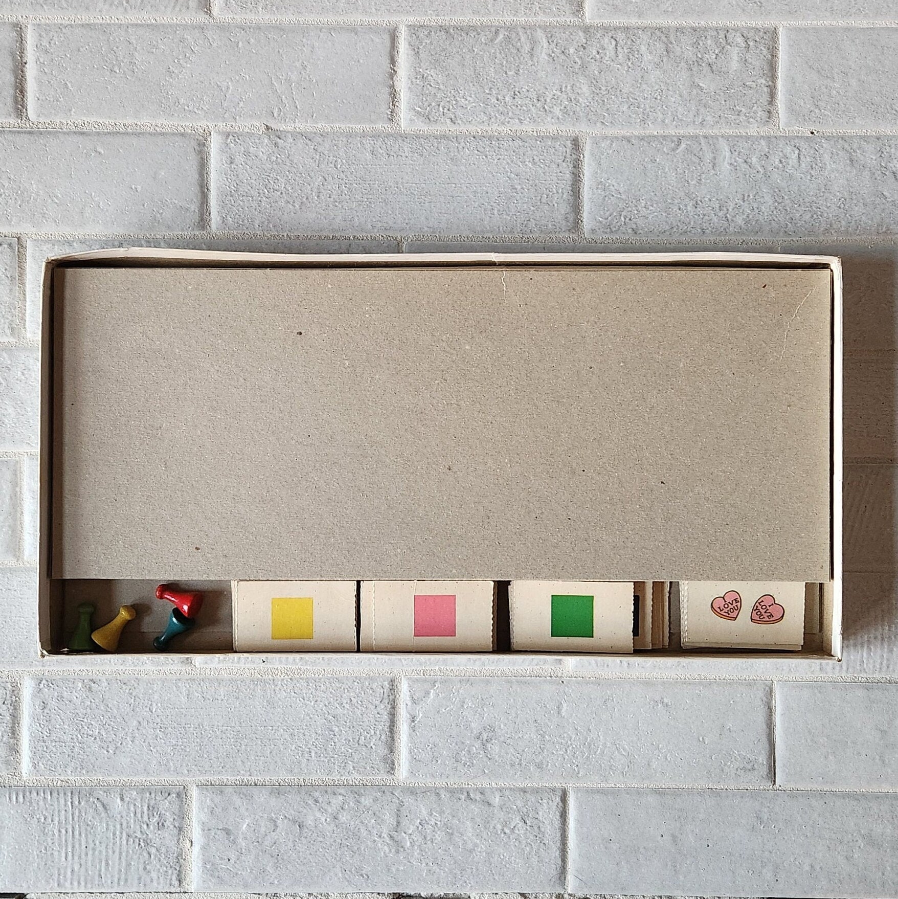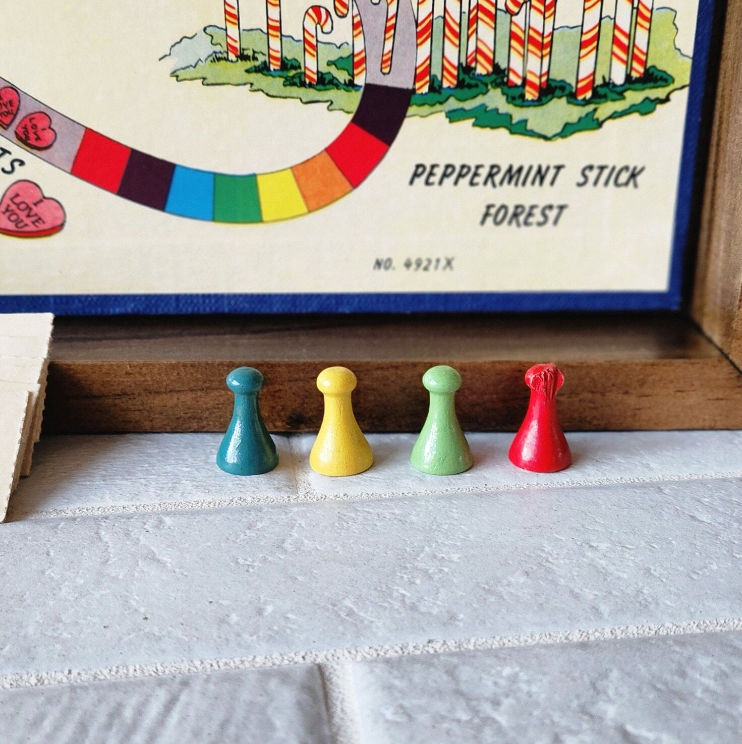 🎲 All four wooden playing pieces and cards (7 treat cards) are in great condition. The red pawn has a small break on it's tip which appears to be a factory issue. Cards are a bit faded, but show almost no wear.