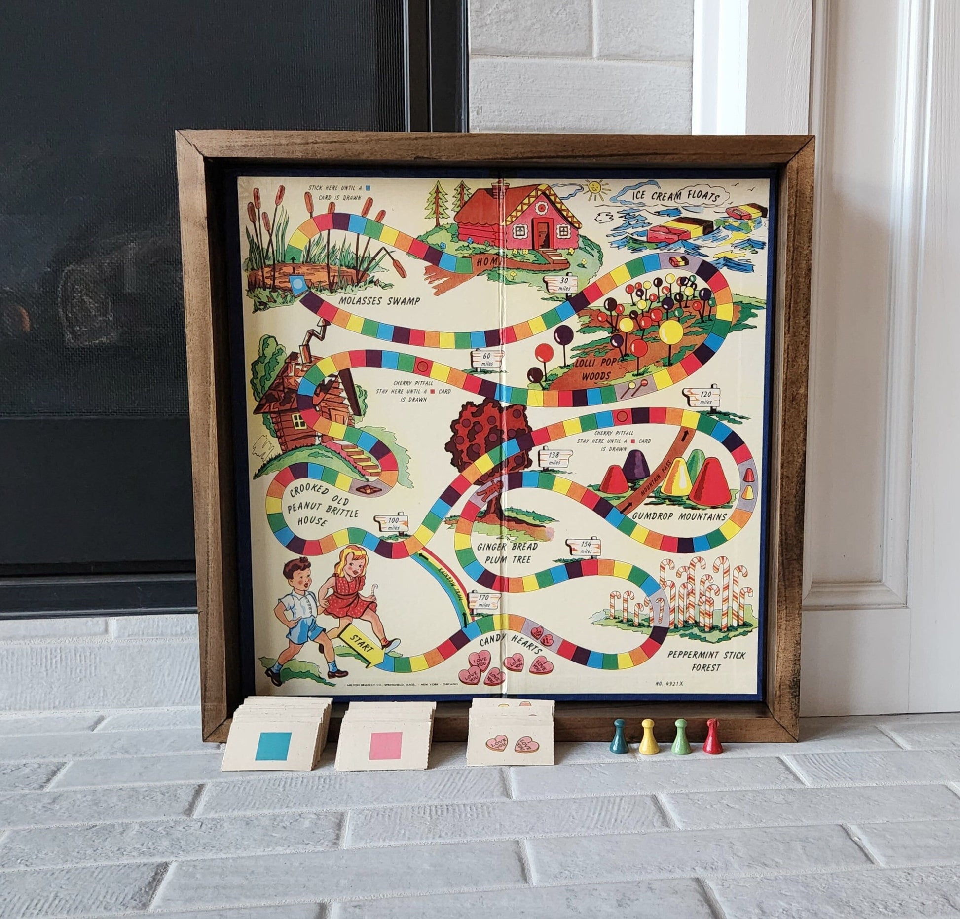 Bring the magical world of Candy Land to life with this rare 1949 handmade framed board game.