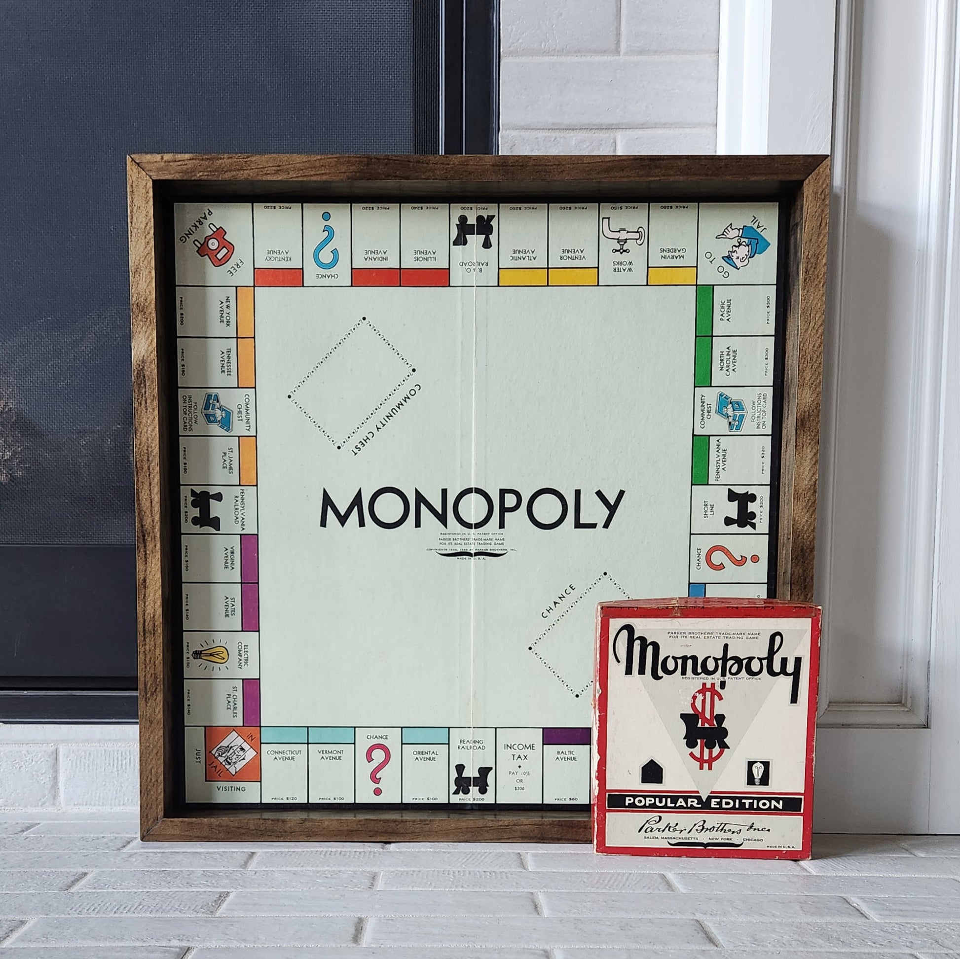 Display and Play 1953 Monopoly Red Mustache Handmade Framed Board Game