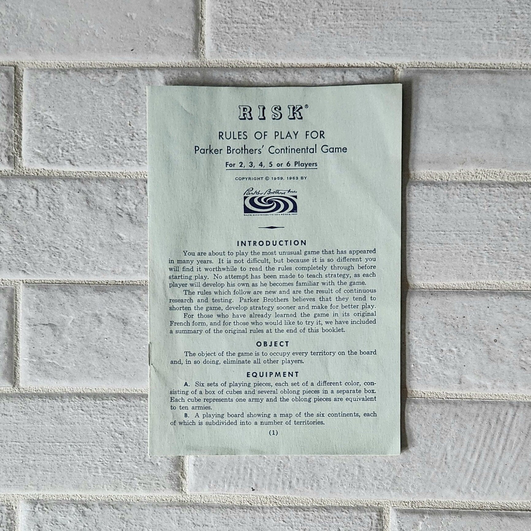 RISK was invented by French film director Albert Lamorisse in 1957 as "La Conquete du Monde" (The Conquest of the World). Parker Brothers purchased and released the game in 1959 as "RISK Continental Game".