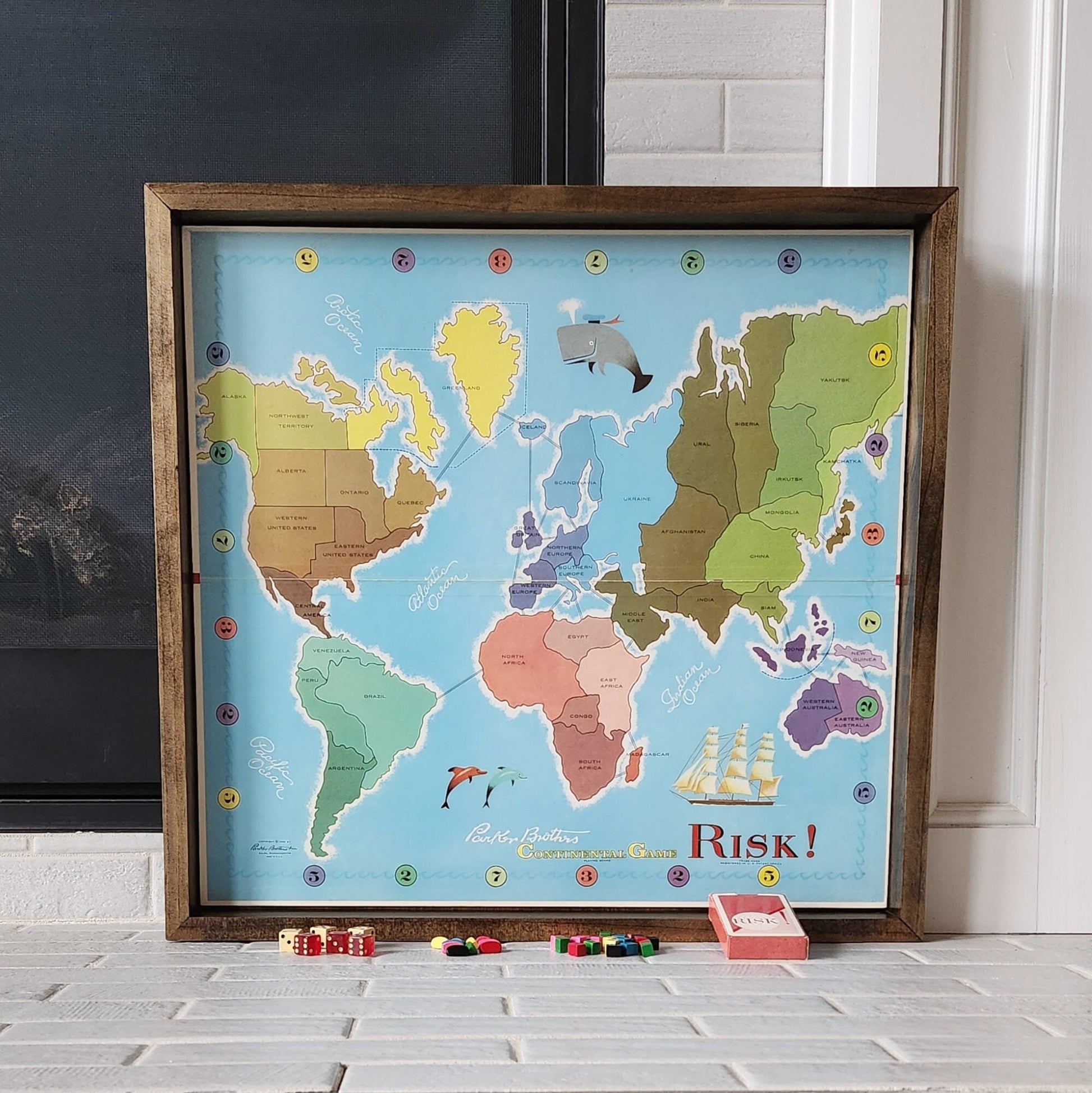 Unleash your inner strategist with our handmade framed 1963 RISK board game!