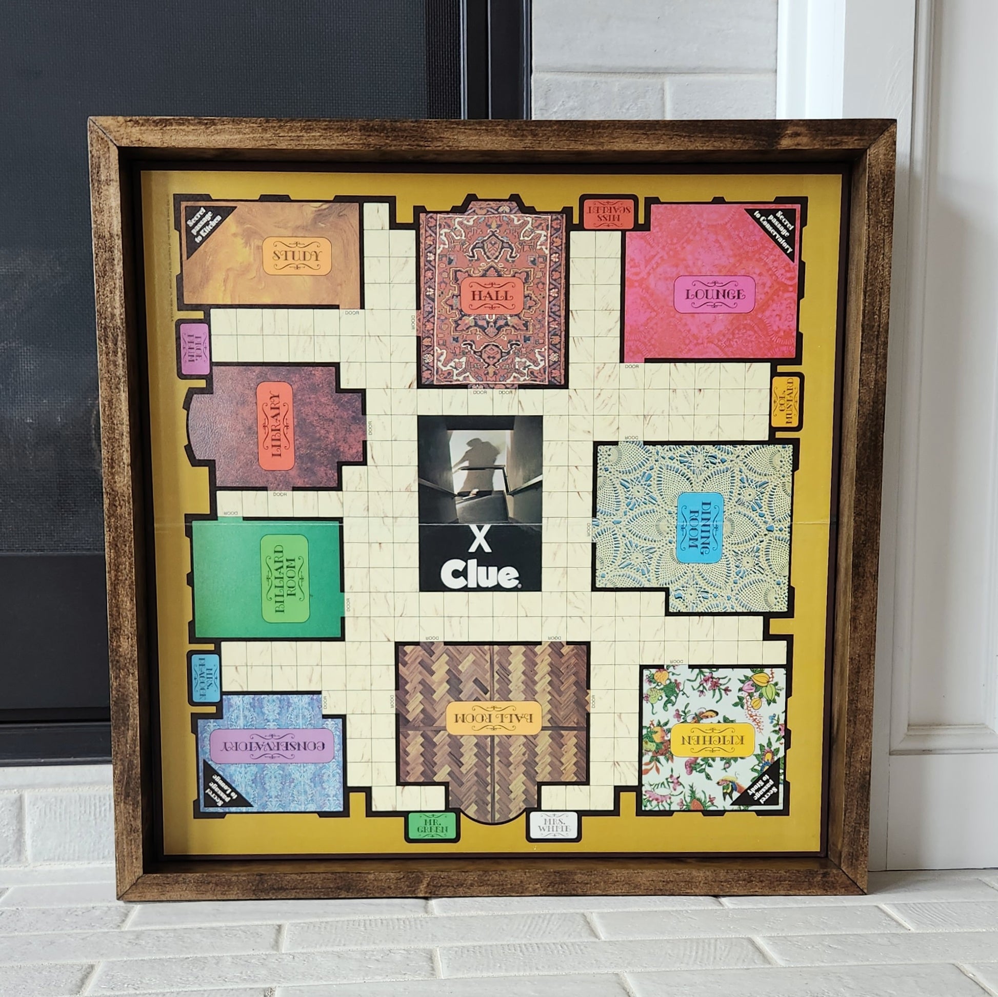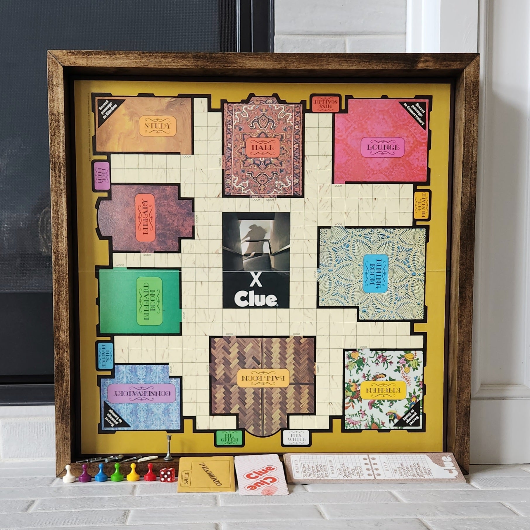Transform your home into a vintage game night with our handmade framed 1979 Clue board game.